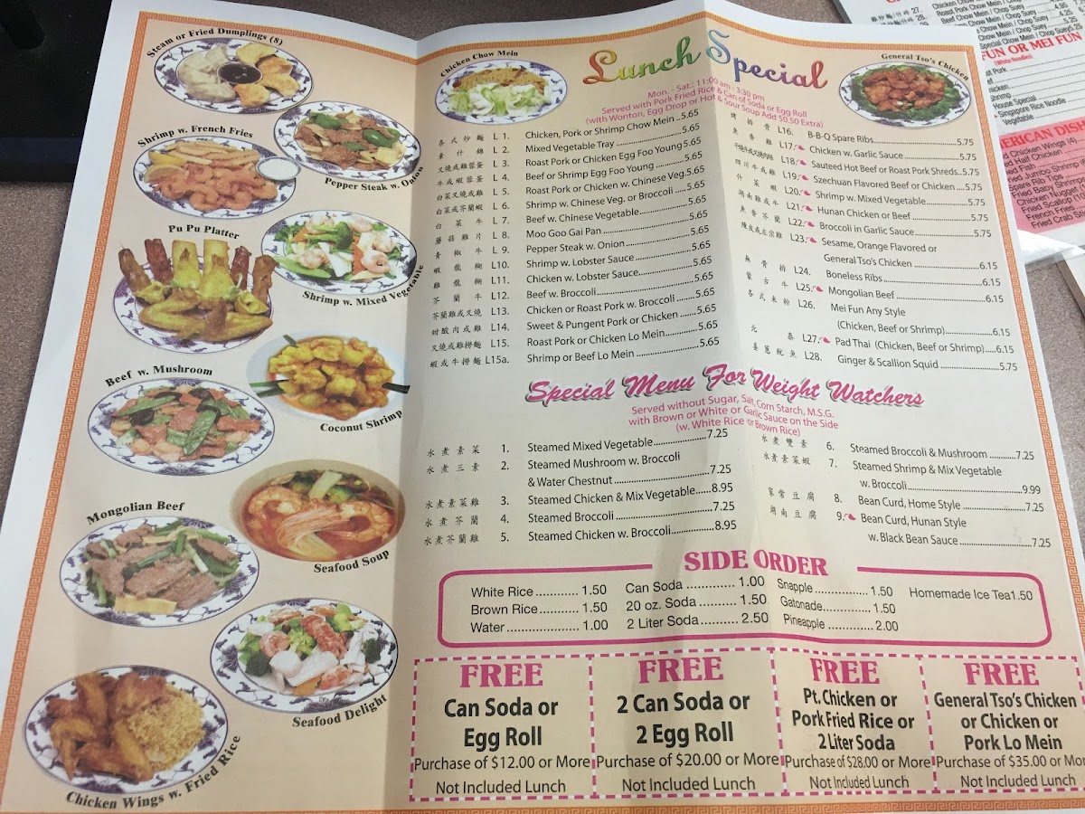 Overall, Fairview Chinese Restaurant offers a broad and familiar menu that covers everything from classic American-Chinese comfort dishes to more traditional specialties, making it easy to find something satisfying for any craving. The selection of American-style items like Fried Chicken Wings (4) and Fried Jumbo Shrimp (6) pairs well with staple appetizers such as Roast Pork Egg Roll and Fried Vegetable Dumplings (8). Their soup options, including Wonton Soup and Egg Drop Soup, provide a comforting start, while the variety across noodle and rice dishes-like Chicken Chow Mein, Beef Lo Mein, and Shrimp Fried Rice-keeps the menu versatile. Heavier entrées such as Chicken With Broccoli, Beef With Mixed Vegetables, and Shrimp With Lobster Sauce highlight dependable, well-loved flavors, while chef specialties like Happy Family and Triple Crown add a more indulgent touch. Even lighter options are available with dishes like Steamed Chicken With Broccoli, showing thoughtful balance. Although specific prices aren’t listed, the menu reads like a classic, affordable neighborhood Chinese spot with generous variety, making it a reliable go-to for both quick lunches like L1. Chicken Chow Mein Lunch and full dinner spreads.